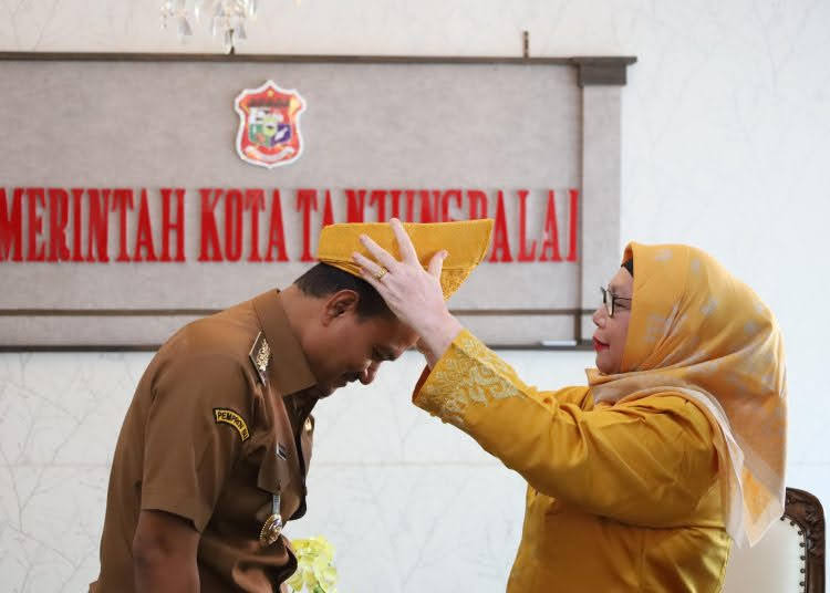 Disela sela audiensi tersebut Ketua MABMI juga memakaikan Tanjak Melayu bewarna kuning emas didampingi pengurus PD MABMI Tanjungbalai yang hadir. (Yus)