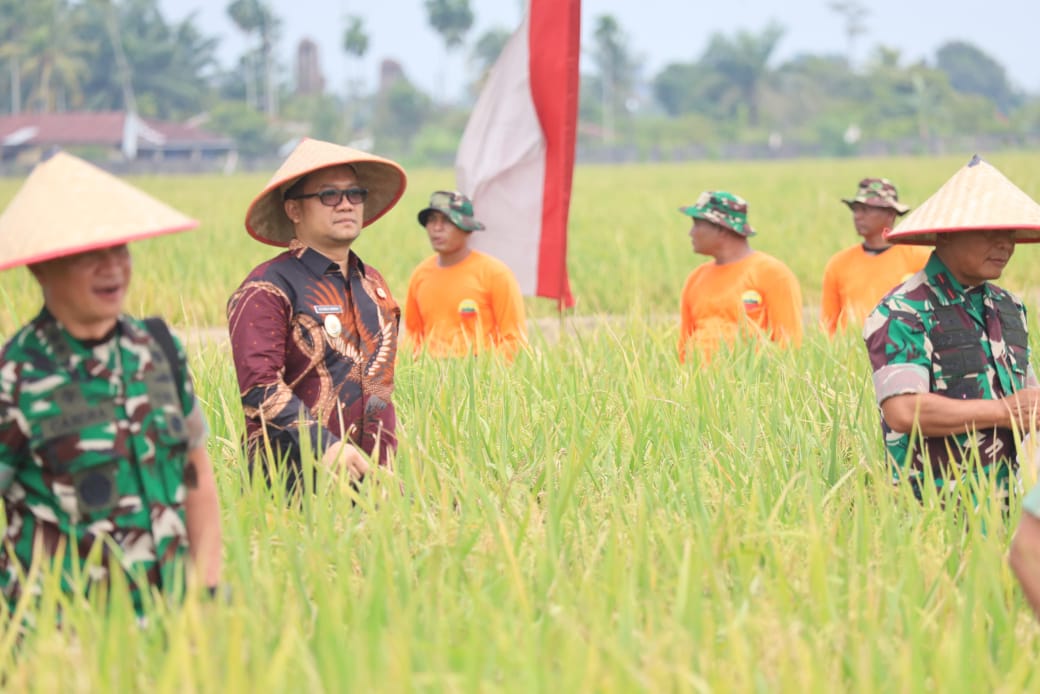 Wakil Wali Kota Tanjungbalai Sumatera Utara, Muhammad Fadly Abdina menghadiri kegiatan panen raya padi yang berlokasi di lahan ketahanan pangan Kodam I/BB, Blok 25 Desa Perkebunan Ramunia, Kecamatan Pantai Labu, Kabupaten Deli Serdang, Kamis (10/7/2025)