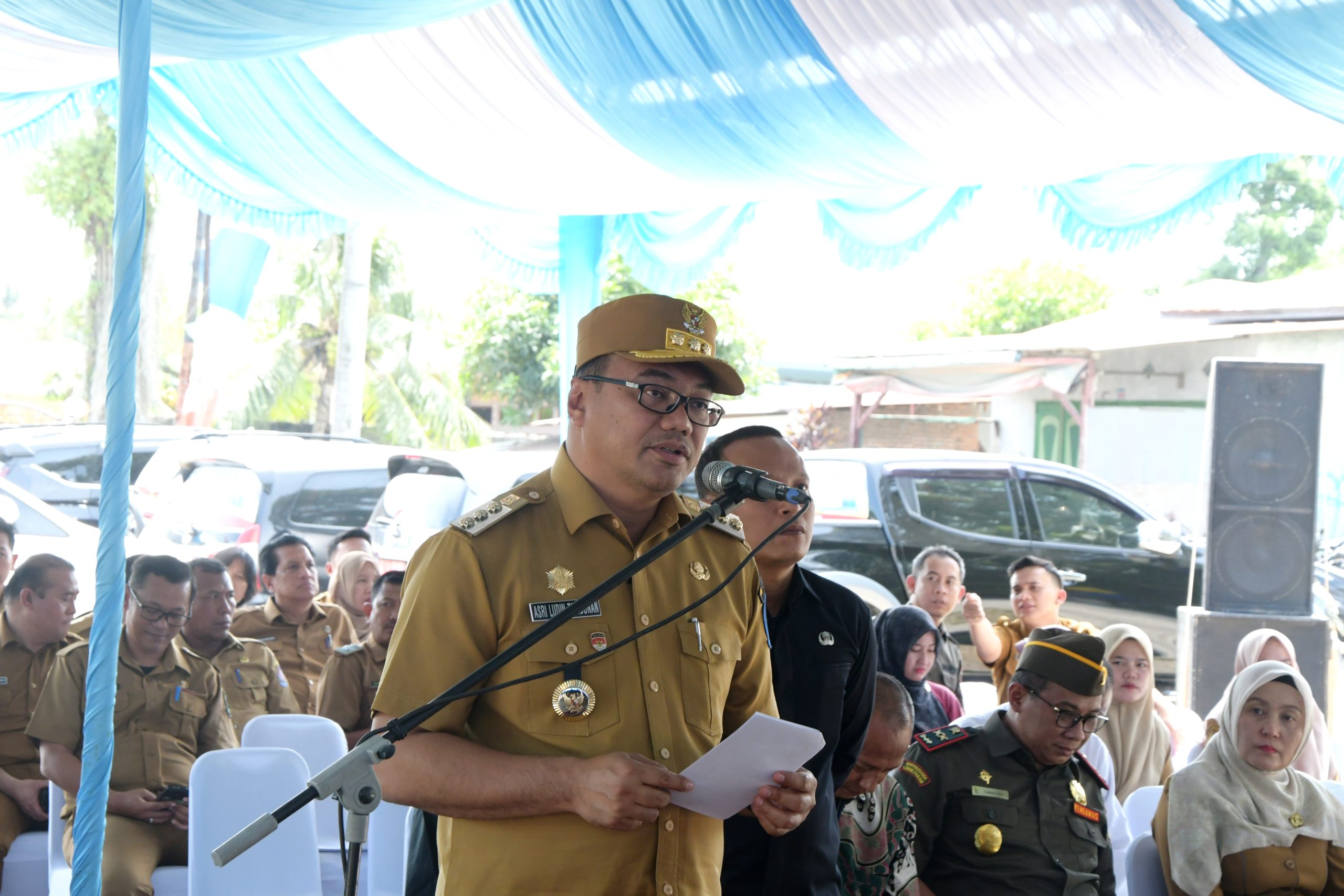 Bupati Deli Serdang, dr H Asri Ludin Tambunan melantik 63 Jurusita dan Petugas Penilai Pajak di lingkungan Pemerintah Kabupaten (Pemkab) Deli Serdang di Desa Pantai Labu Pekan, Kecamatan Pantai Labu, Selasa (22/7/2025).