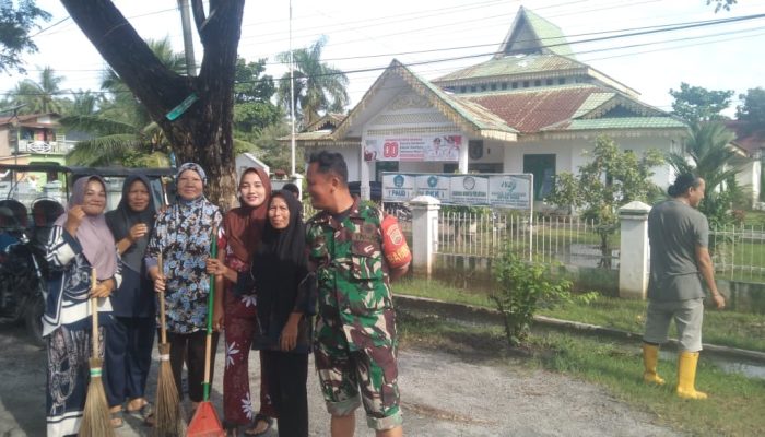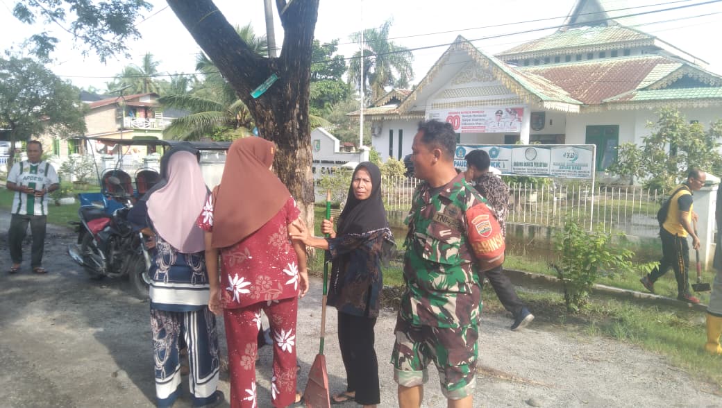 Tim gabungan muspika dan Babinsa turun langsung mengadakan aksi bersih-bersih saluran air sebagai upaya antisipasi banjir susulan dan menjaga kebersihan lingkungan.