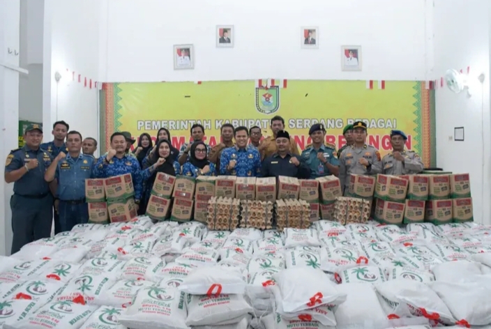 Wabup Sergai. H. Adlin Umar Yusri Tambunan mengatakan bantuan yang diberikan mencakup sejumlah kebutuhan pokok masyarakat seperti beras, mie instan, dan telur.